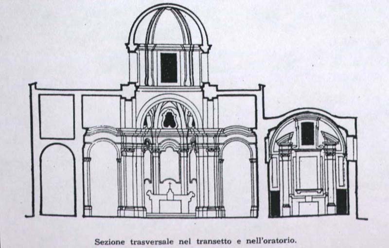 sezione trasversale nel transetto e nelloratorio